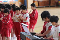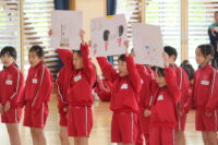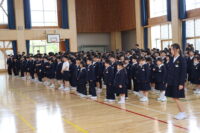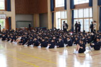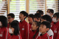 5・6年生は、少年消防クラブの入隊式に参加し、火災予防について意識を高めました。