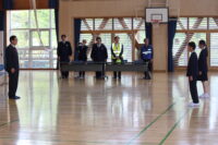 1年生は、入学して初めての避難訓練です。避難の仕方を事前に練習し、放送を聞いて落ち着いて避難していました。