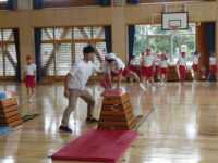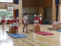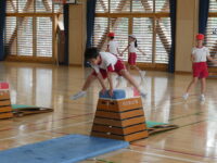 5年生 体育 2025年9月29日 5年生, たんぽぽ・ひまわり・すみれ・すまいる 5年生の体育では、縄跳びと跳び箱に取り組んでいます。 音楽に合わせてリズム縄跳びをしたり、跳び箱の段数や跳び方を変えて挑戦したりするなど、子供たちの「やってみよう」の気持ちが伝わります。