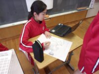 1年生は、入学して初めての避難訓練です。避難の仕方を事前に練習し、放送を聞いて落ち着いて避難していました。