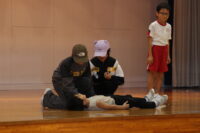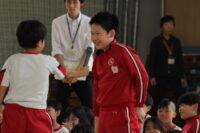 また、青少年育成事業として地域の方に来ていただき、「おはよう」の挨拶で子供たちを迎えていただきました。