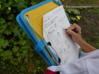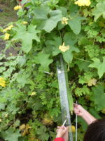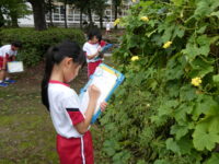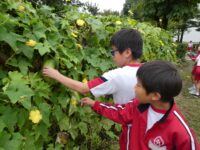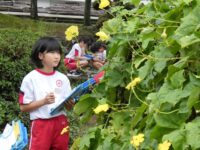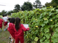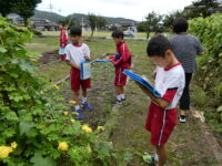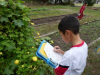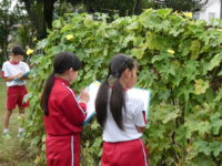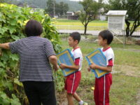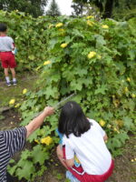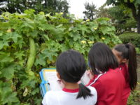 大きく成長したヘチマに、子供たちは驚きながら観察していました。
