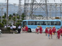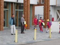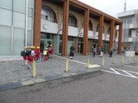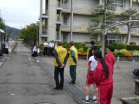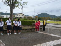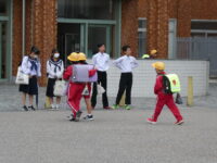 また、中部小からも福光中へ行き、校門で登校する中学生にあいさつをしました。