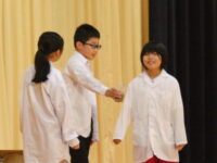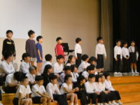 本日は、「ステージ発表鑑賞会」として本番のプログラム通りに発表し、他学年のステージ発表を鑑賞し合いました。