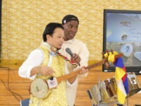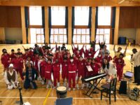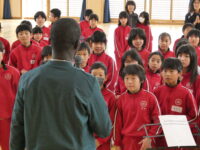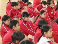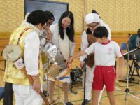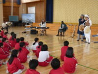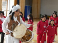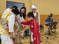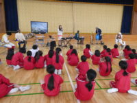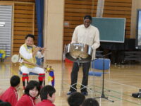 チベットやセネガル、韓国など、世界のいろいろな国出身の演奏家の方々で構成されている音楽アーティスト「KURAGE BAND」をお迎えして、4年生がワークショップに参加しました。