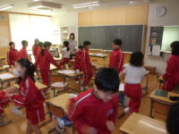 2時間目の授業終了と同時に、全校一斉で行っています。