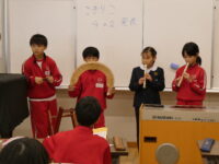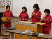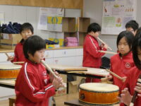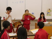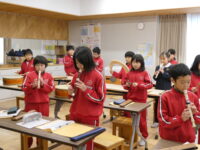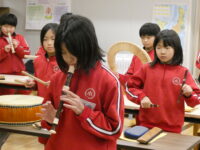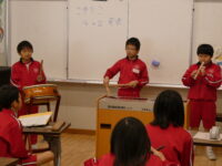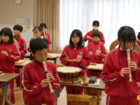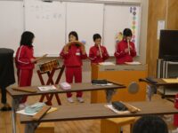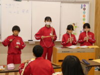 今日は、アルトリコーダーや太鼓、ぼうささら、こきりこ、びんざさらを演奏し、グループごと発表会を行いました。