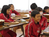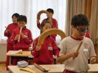 4年生の音楽では、「こきりこ」を聴いたり演奏したりしています。