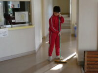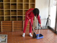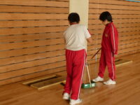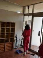 地域チームの掃除班では町内清掃を計画していましたが、クマが出没する可能性があることから、中部小学校に隣接する「西部体育館」の清掃を行いました。