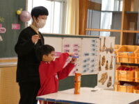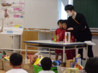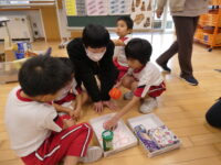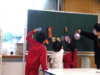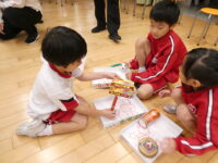 子供たちは、いろいろな視点から立体を捉えて、仲間分けをしています。