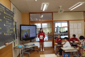 5年生は、「食べて元気!ごはんとみそ汁」の学習のまとめとして、それぞれの家庭で「とっておきのみそ汁」を作り、作ったみそ汁の画像、作り方のポイント、感想などをスライドにまとめ、紹介し合いました。