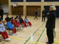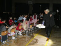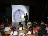 影絵師であり音楽家でもある川村亘平斎様をお迎えし、1年生が「インドネシア影絵」の鑑賞、体験を行いました。