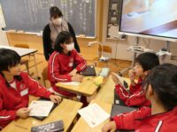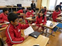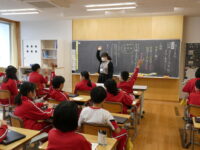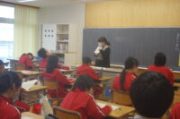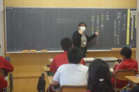福光中学校の国語科の先生に来ていただき、中学校1年生で学習する「漢字の音読み・訓読み」について6年生に授業をしていただきました。