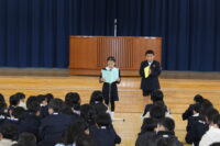 代表の児童2名が、2学期がんばったことや3学期に頑張りたいことを発表しました。