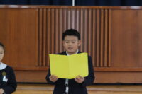 2年生の児童は、全校児童の前で苦手なかけ算九九にあえて挑戦し、見事間違えずに言えた時には、大きな拍手が沸き上がりました。また、6年生の児童は、中学生になる準備をしたいという決意を力強く語ってくれました。