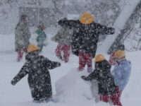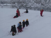子供たちは、休み時間になると外に出て雪遊びを楽しんでいます。