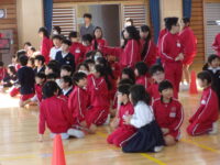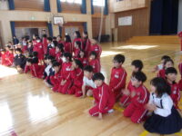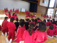 1年生から5年生も体育館に集まり、大応援団ができました。