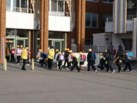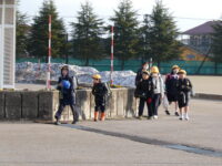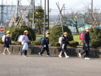 今日から、通学班の新班長が先頭になって登校しています。
