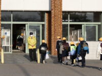 福光地域民生児童委員協議会の皆様が、「おはよう」「今日も元気で過ごそうね」と声をかけながら子供たちを迎えてくださいました。