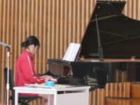 6年生は、これまで歌の指導をしていただいた高野先生に、卒業式で歌う式歌を聞いていただきました。