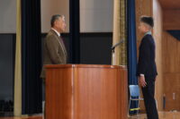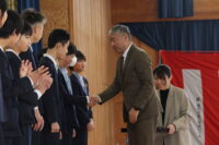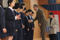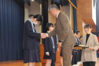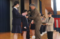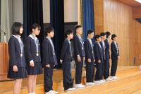 第一交易株式会社 社長 西能 徹 様より、受賞した6年生13名の児童にメダルをかけていただきました。