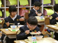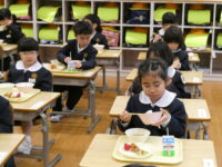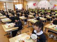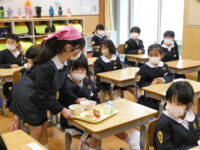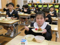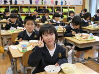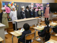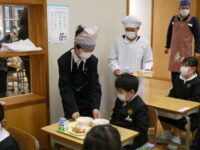 給食では、6年生が配膳の手伝いをしてくれました。