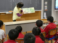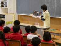 読み聞かせ(2年生) 2026年4月16日 2年生, たんぽぽ・ひまわり・すみれ・すまいる, 未分類 おはなし会「まんまる」の方に来ていただき、2年生の子供たちに絵本の読み聞かせをしていただきました。 子供たちは、一緒に歌を歌ったり、話の展開に「えーっ!」声を上げたりしながら、絵本の世界に引き込まれていました。