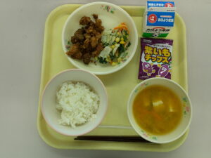鶏肉のから揚げ 春雨サラダ フルーツポンチ