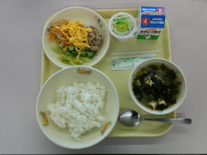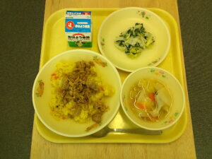 鶏そぼろ丼 牛乳