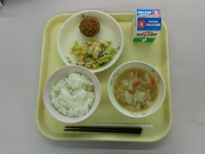 梅ひじきごはん 牛乳 福豆