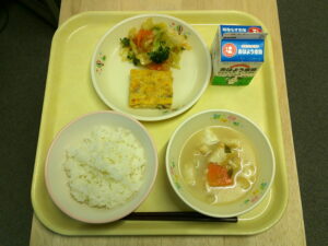 オムレツ ツナマヨサラダ マカロニスープ